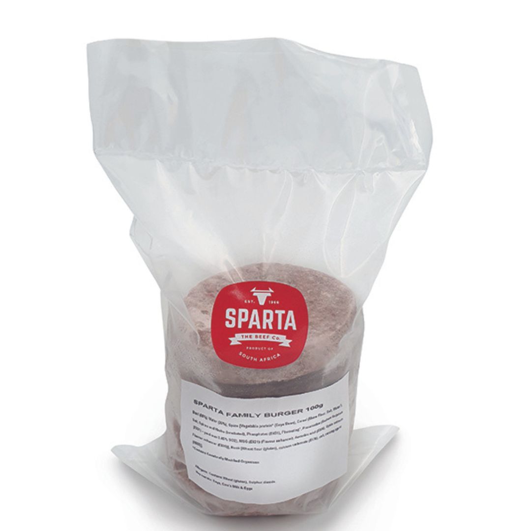 Labelling front: Red Sparta logo label & ingredient declaration label. Frozen option only..