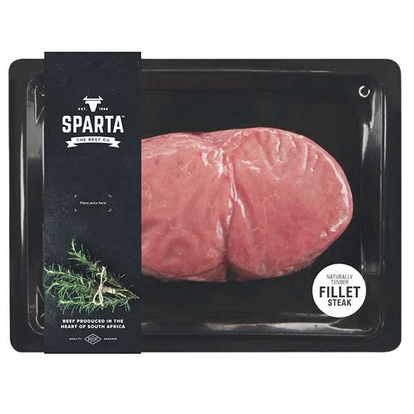 Labelling front:  Sparta Steak Sleeve and steak cut indicator label.