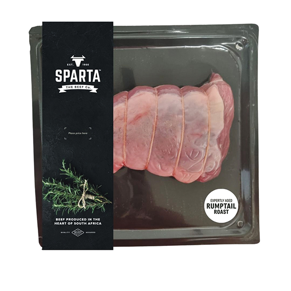 Labelling front: Sparta Steak Sleeve and steak cut indicator label Labelling back: Production date & best before date label..