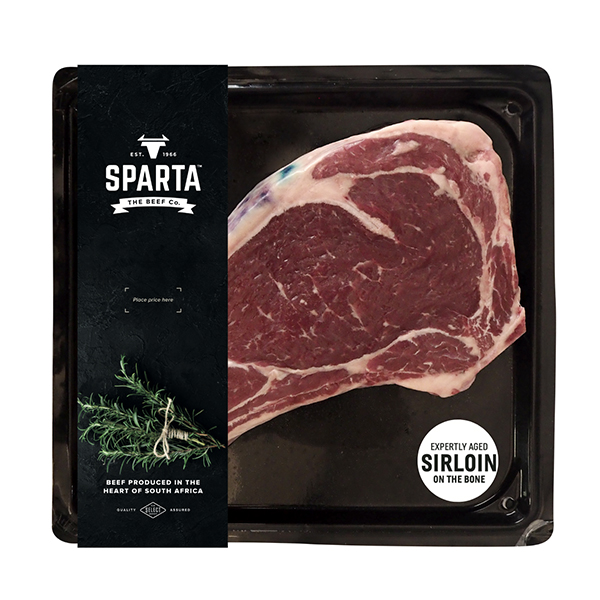 Labelling front: Sparta Steak Sleeve and steak cut indicator label.